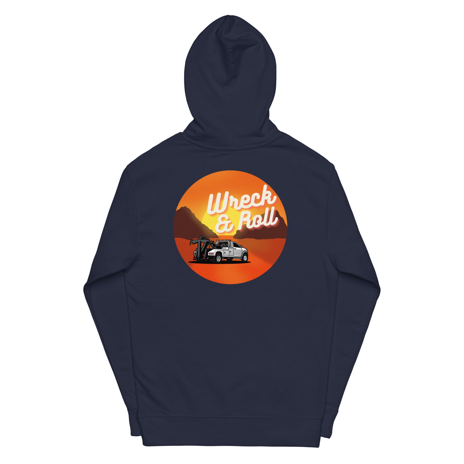 This distinctive tee features a captivating design that showcases a flatbed tow truck against a stunning desert landscape, perfect for those who love adventure and the rugged beauty of the desert.