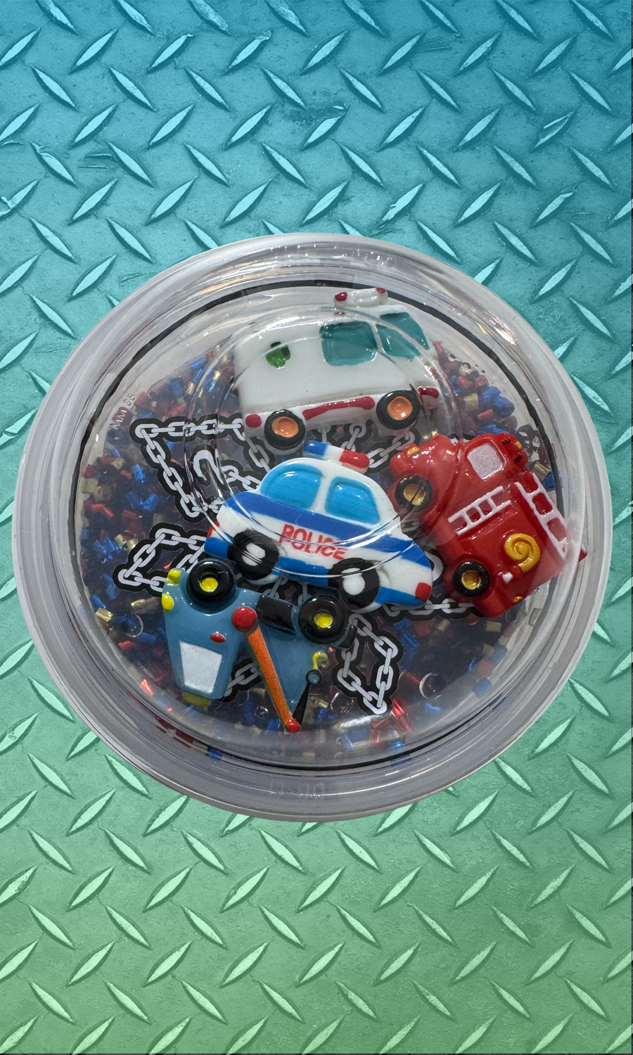 Highway Heroes is a bold, ultra-satisfying Bingsu crunchy slime created to honor those who work roadside to keep our highways safe. Filled with gold, blue, and red Bingsu beads, this slime represents the Slow Down Move Over campaign for towing, police, fire, and EMS.