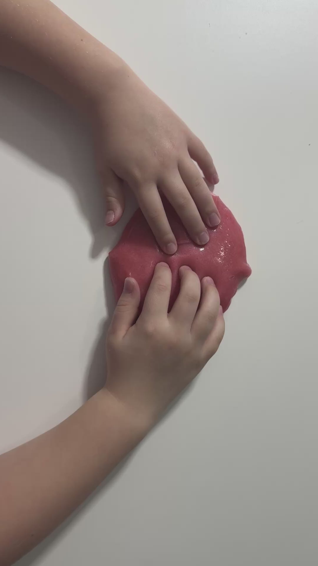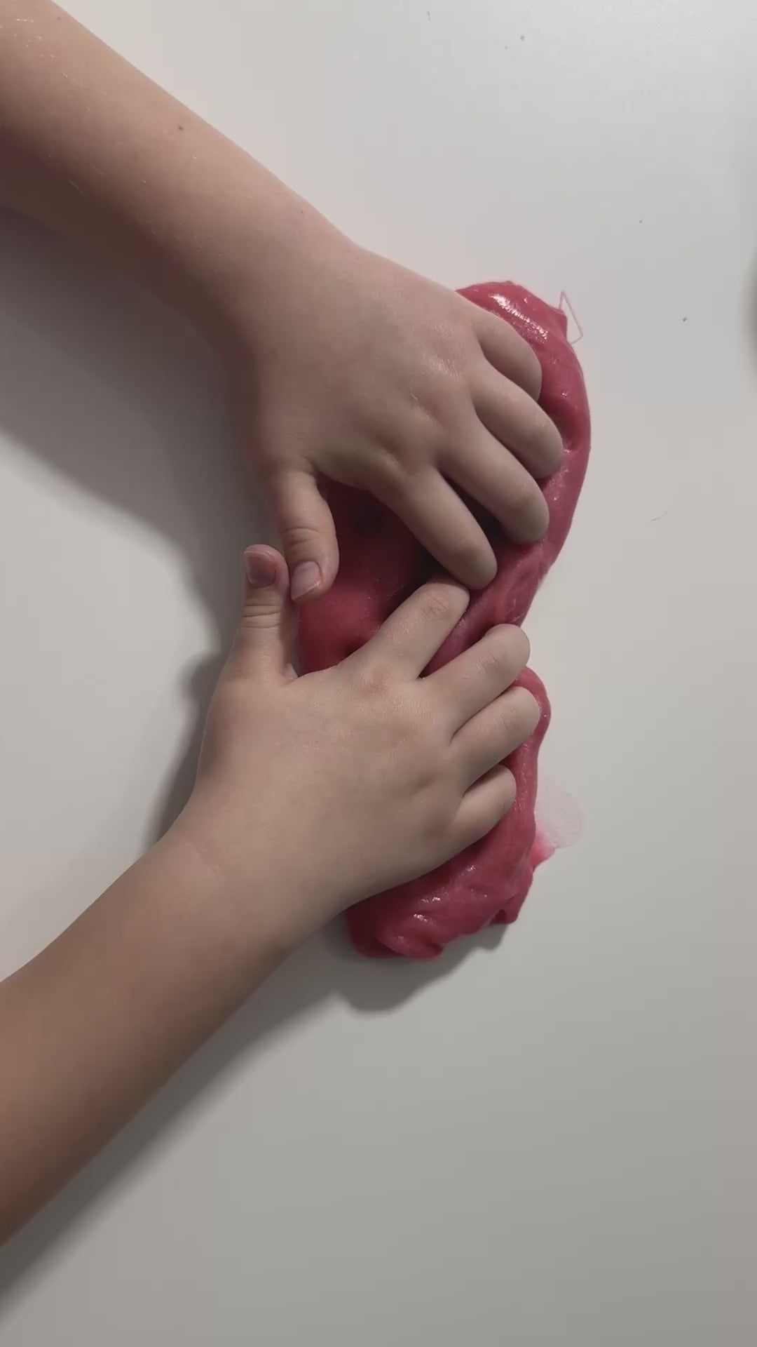 Wash hands before play and keep slime sealed when not in use. If slime becomes sticky, spray lightly with activator and knead until smooth.