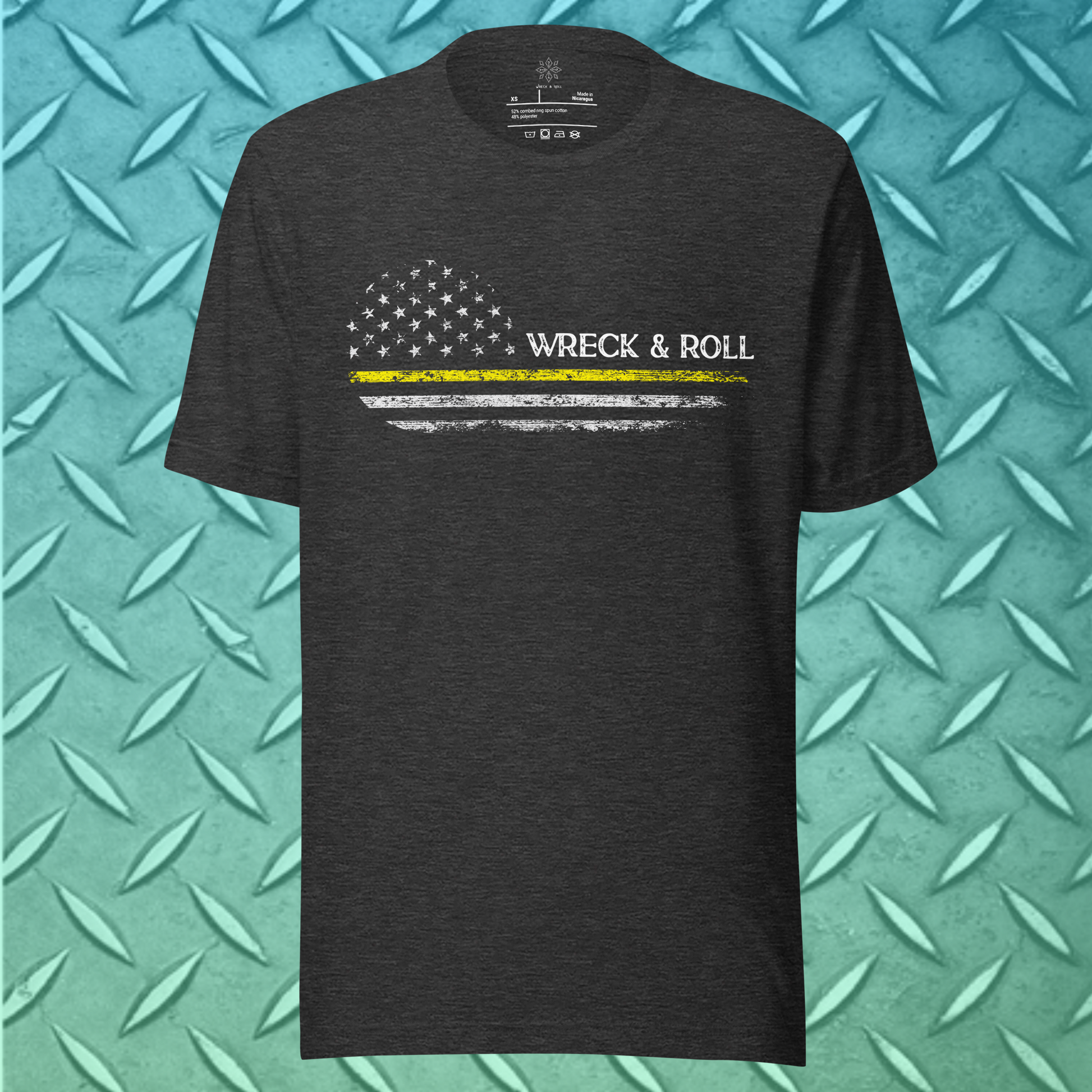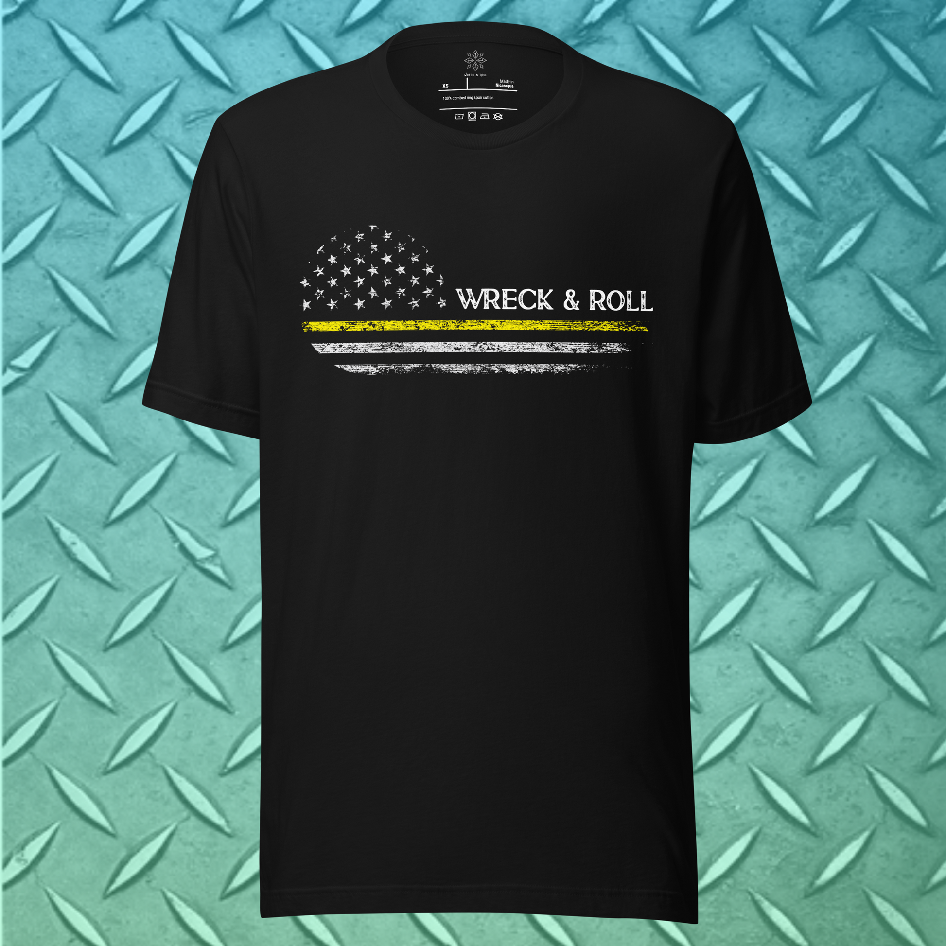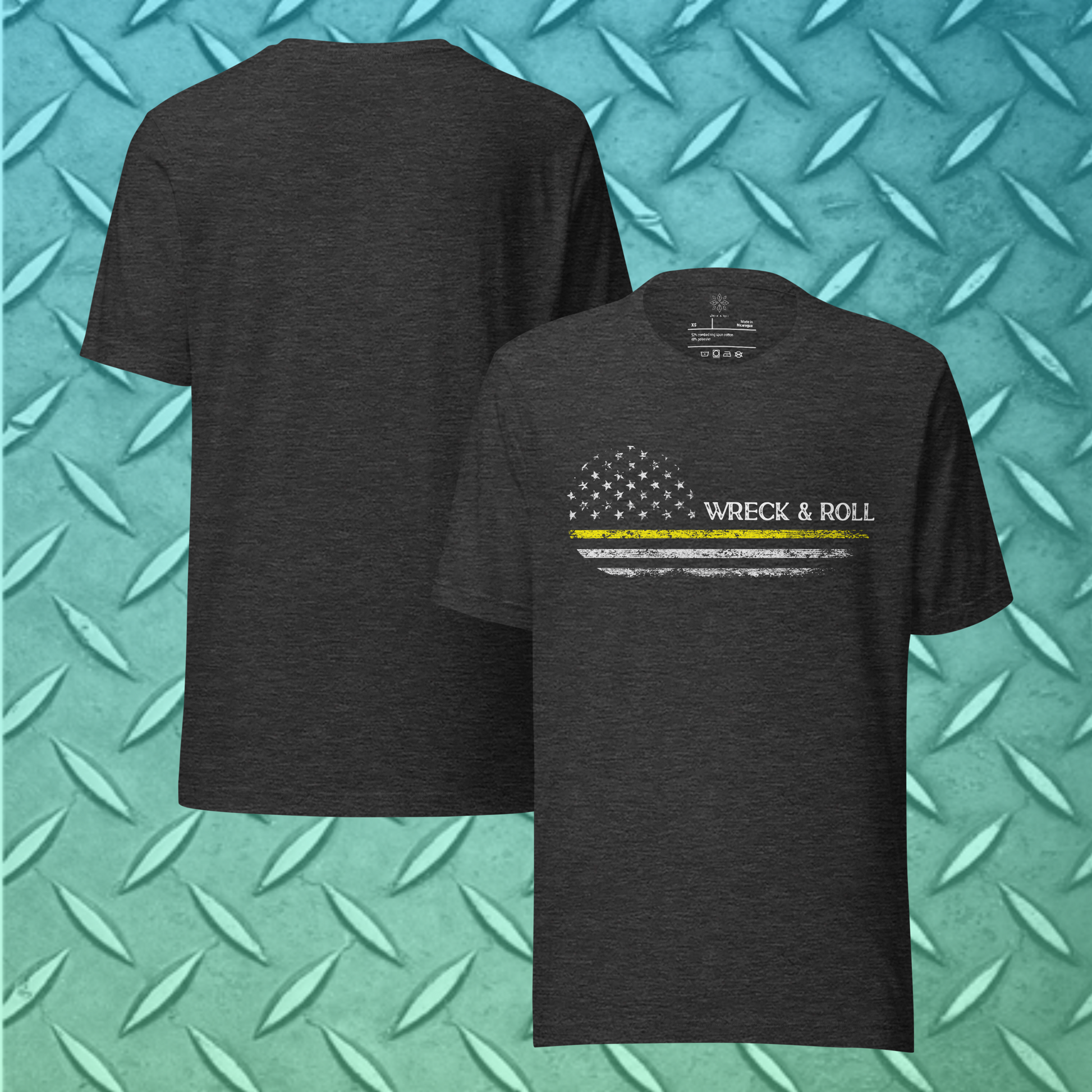 Show your pride and stand tall with our Yellow Line Strong tee. Featuring a rugged, distressed American flag with the bold yellow line across the center, this design represents strength, honor, and the towing community’s commitment to keeping the roads safe.